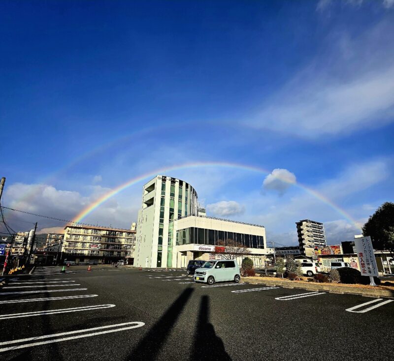 1月某日の朝、出社するときれいな虹が!ティ・エフ・シービルを囲うように”ダブルレインボー”